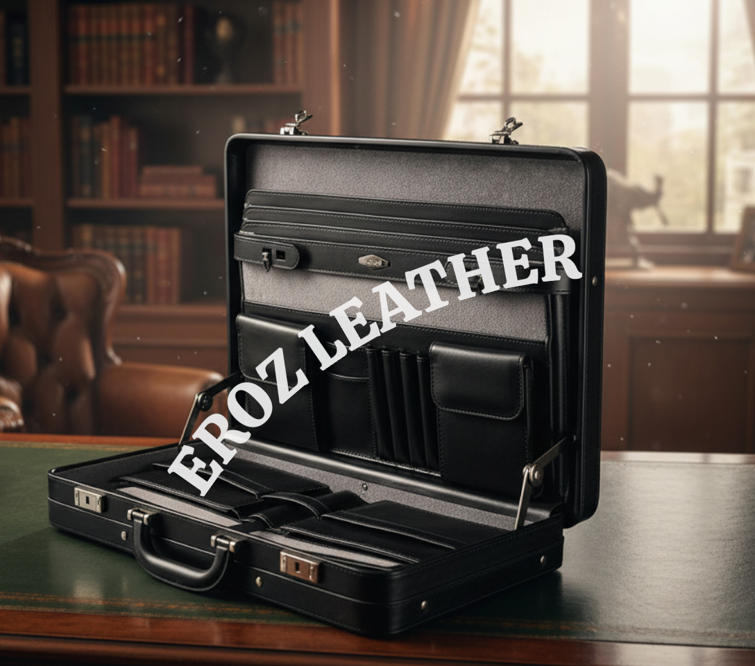 Acabado Exterior: Está forrado meticulosamente en Cuero Genuino, un material que no solo luce excepcional, sino que desarrolla una pátina única con el tiempo, reflejando su trayectoria profesional.