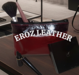 Diseñada para guardar sus esenciales de belleza con estilo. Esta cosmetiquera de base ancha combina dos texturas de cuero (o símil cuero) para un acabado único.