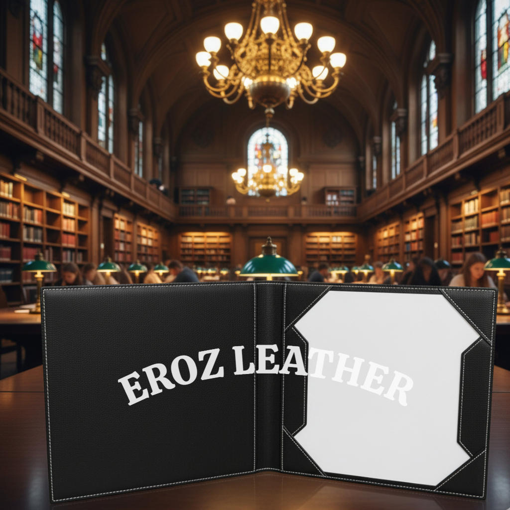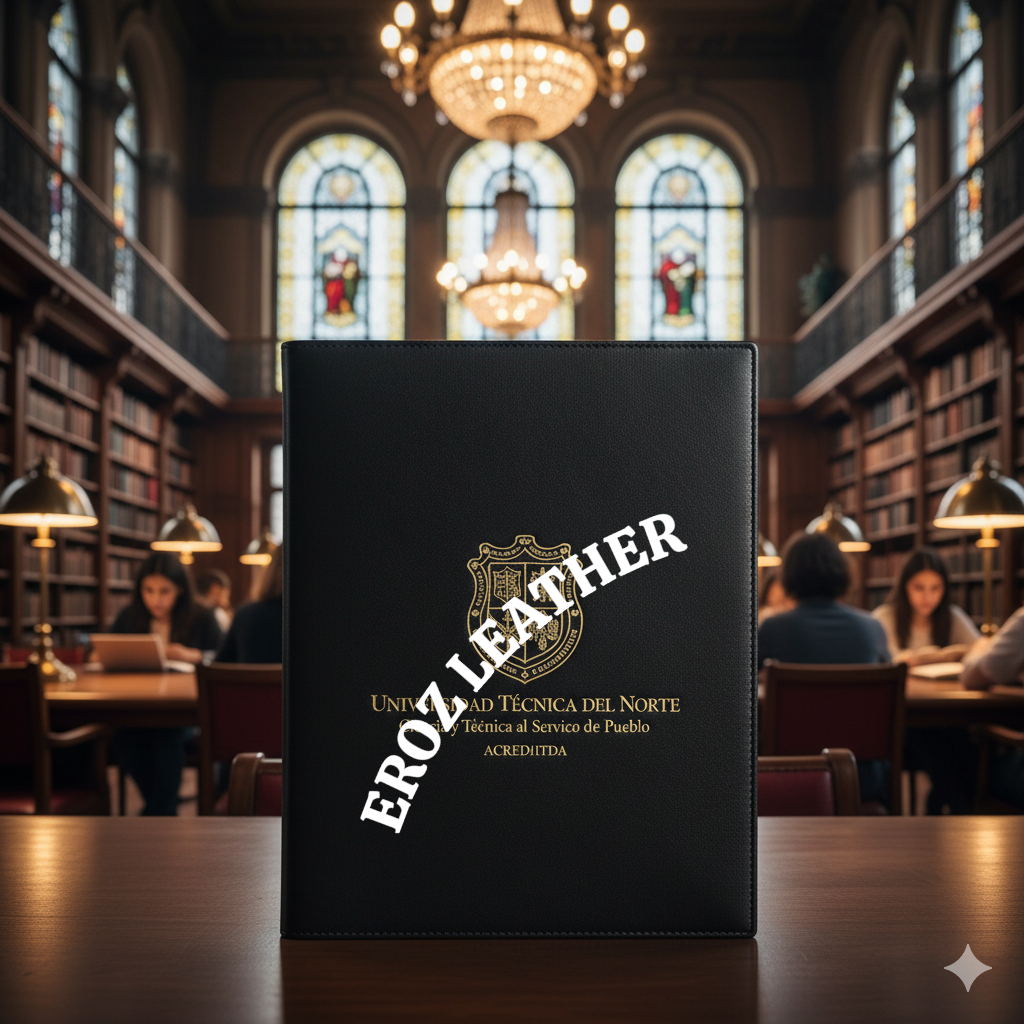 Elegante porta títulos diseñado para celebrar y resguardar dos logros académicos simultáneamente. Su formato amplio y su construcción de alta calidad lo hacen ideal para ceremonias de graduación y premiaciones institucionales.