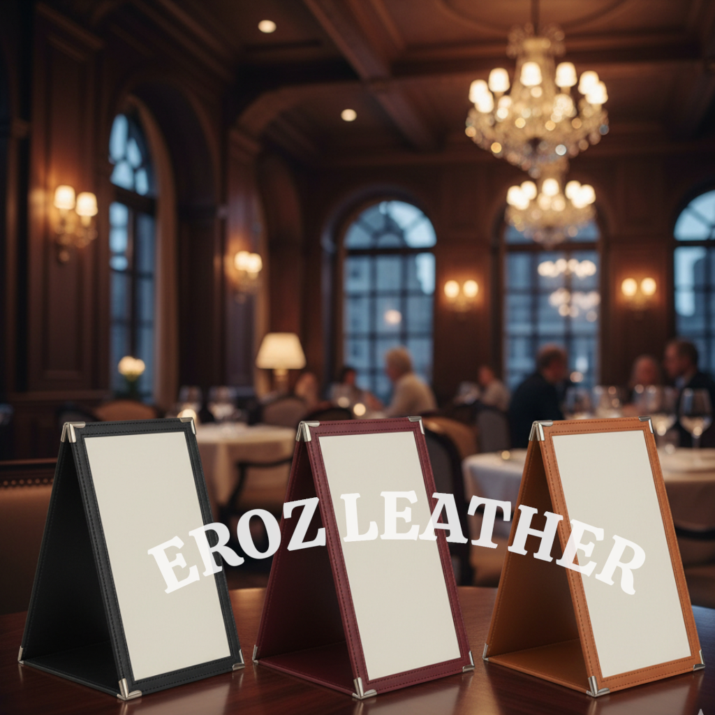 Este porta menú de mesa combina un diseño único y estable con materiales de alta calidad, garantizando una presentación impecable en restaurantes, bares y hoteles. Su estructura triangular permite una fácil visualización desde cualquier ángulo de la mesa.