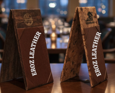 Este elegante Porta Menú de dos cuerpos es la elección perfecta para restaurantes, hoteles y cafeterías que buscan proyectar una imagen de calidad y sofisticación. El diseño clásico con esquineros asegura que el menú se mantenga impecable.
