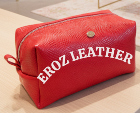 Esta cosmetiquera de EROZ LEATHER es la solución perfecta para llevar tus esenciales de belleza o aseo personal con un toque de lujo audaz. Ideal para el tocador o para viajar.
